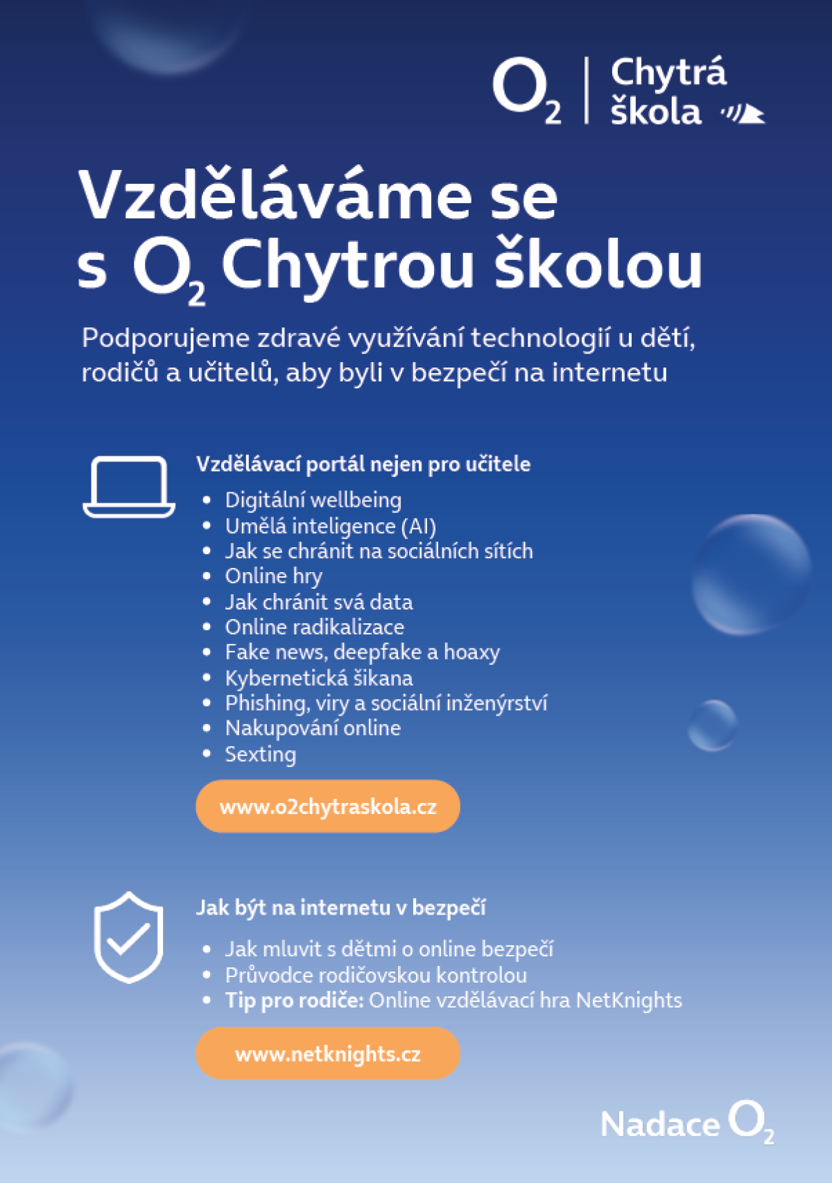 Vzděláváme se s O2 Chytrou školou - Podporujeme zdravé využívání technologií u dětí, rodičů a učitelů, aby byli v bezpečí na internetu.