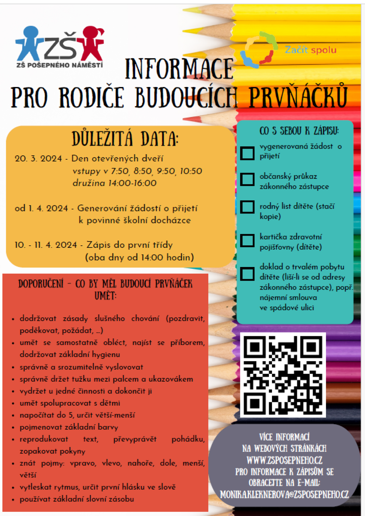 Informace pro rodiče budoucích prvňáčků + Den otevřených dveří 20. 3.