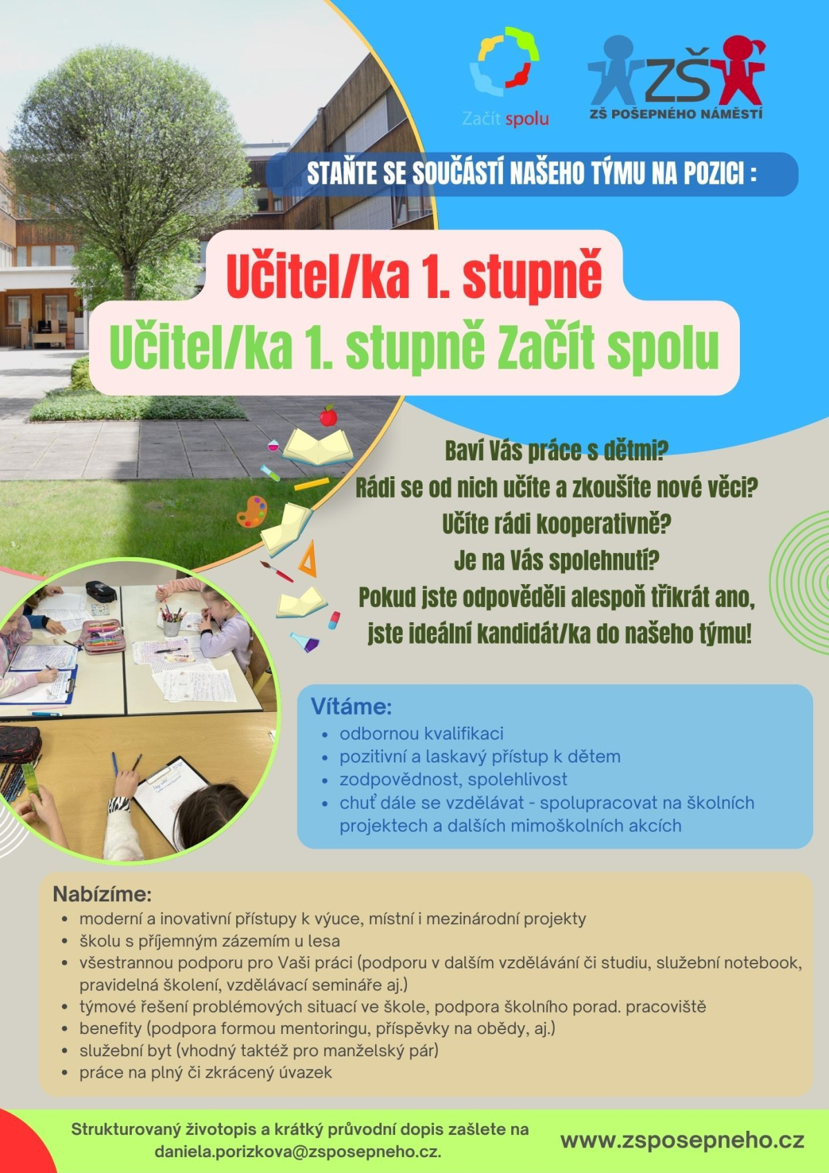 Přijmeme učitele/ku 1. stupně a učitele/ku 1. stupně Začít spolu