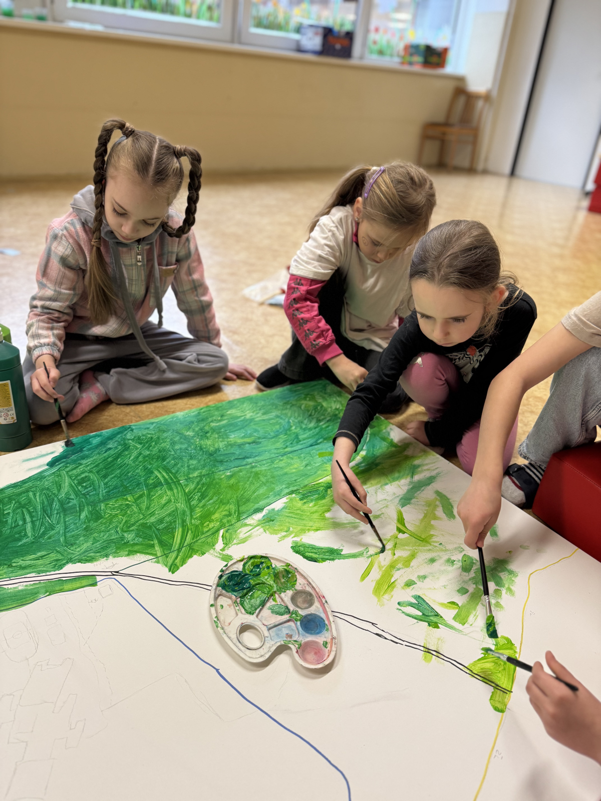 V rámci projektového týdne se třídy 1.A a 2.B zapojily do projektu "Mapa učení venku". Během projektových dní žáci nejprve pomocí map a tabletů sbírali informace, které následně využili k vytvoření velkoformátové mapy.