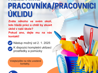 Hledáme pracovníka/pracovnici úklidu pro naše školní prostory