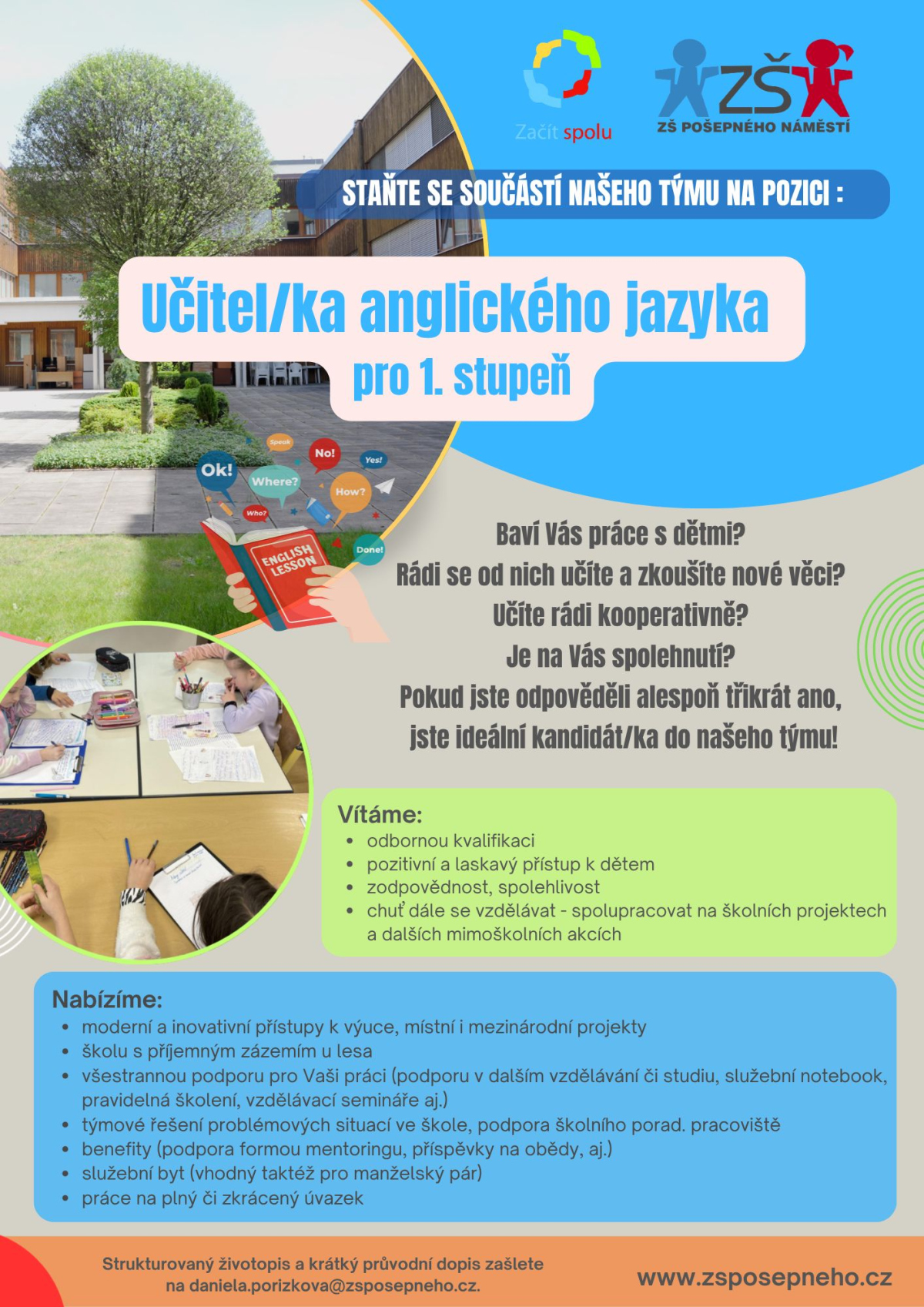 Staňte se součástí našeho týmu na pozici Učitel/ka anglického jazyka pro 1. stupeň