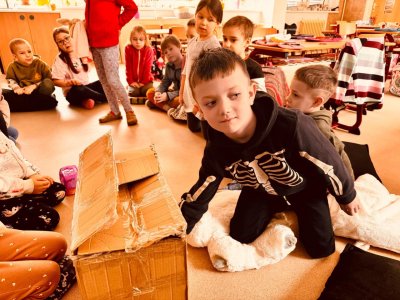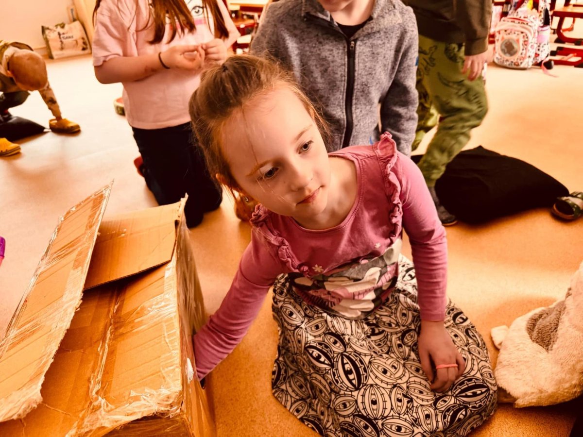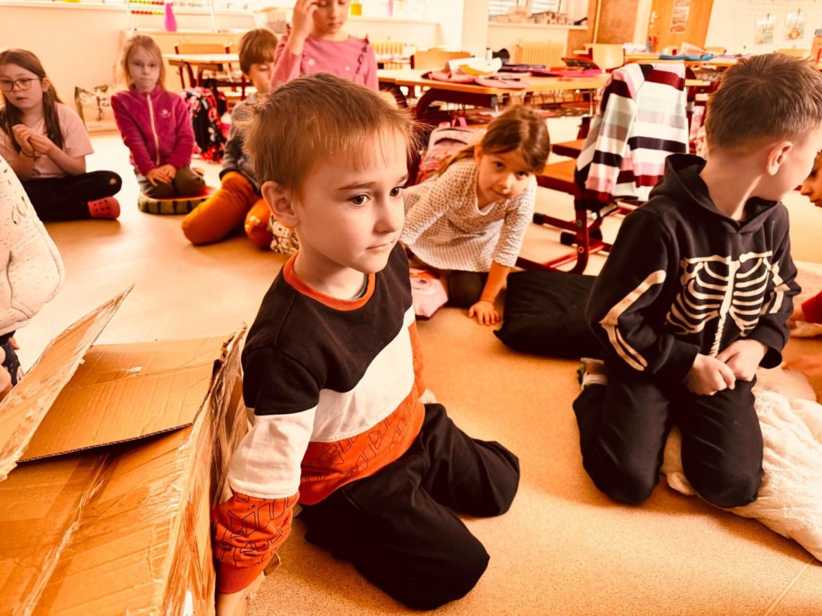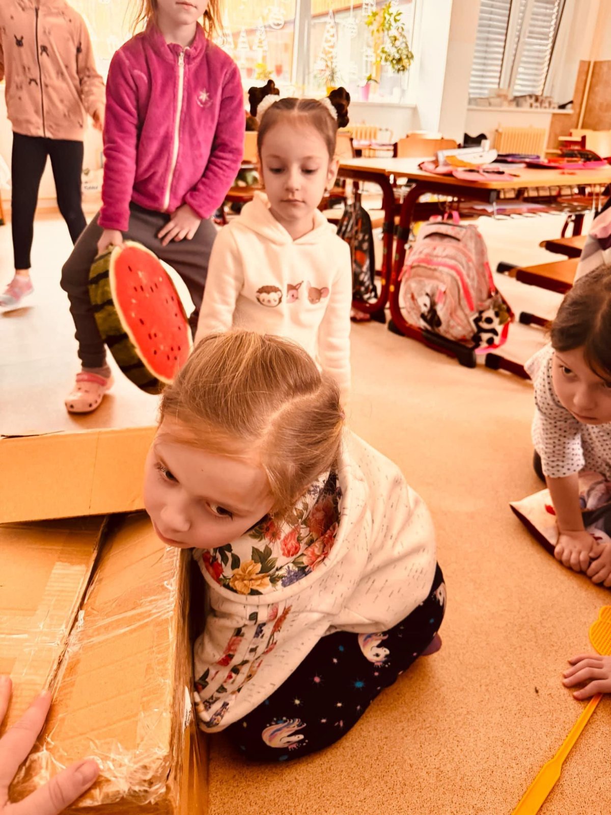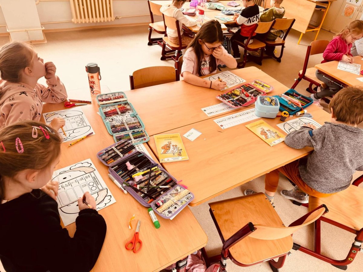 1.B se během další části projektu zaměřily na propojení odpočinku, duševní pohody a čtení a navštívili knihovnu. Dále se žáci věnovali během projektového dne ve škole smyslům. S básničkou si zopakovali 5 smyslů, zahráli si na obchodníky a také se dostali i k pokusům. Zrak jsme trénovali u zrakových iluzí, hmat nás zachránil u úkolu s krabicí a schovanými věcmi, čich nás nezklamal u očichávání tajemného koření, sluchem jsme rozpoznali všechny kamarády ve třídě a nakonec chuť - u ní jsme bezpečně rozpoznali dobroty, které někteří žáci se zavřenýma očima ochutnávali.