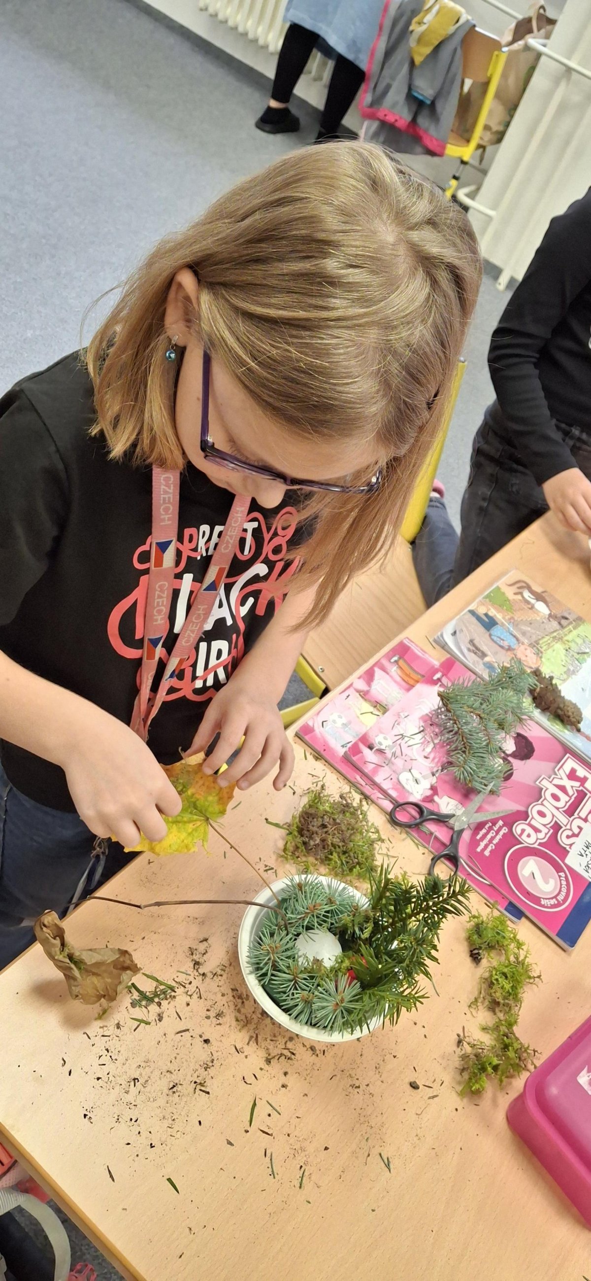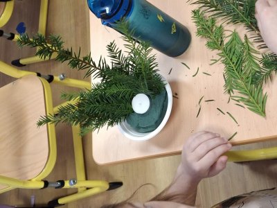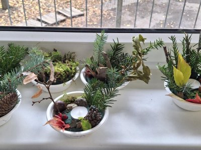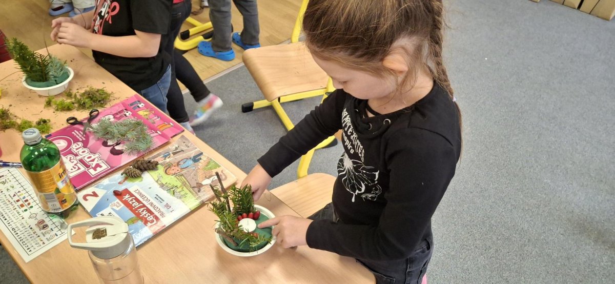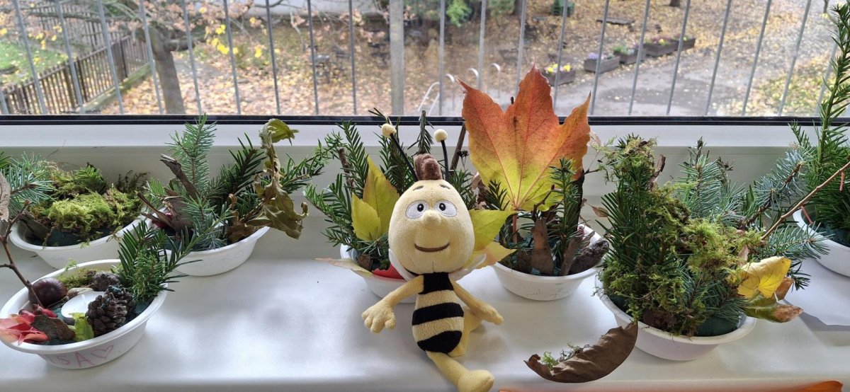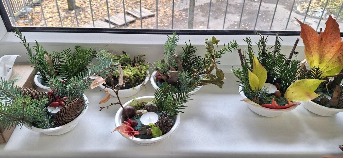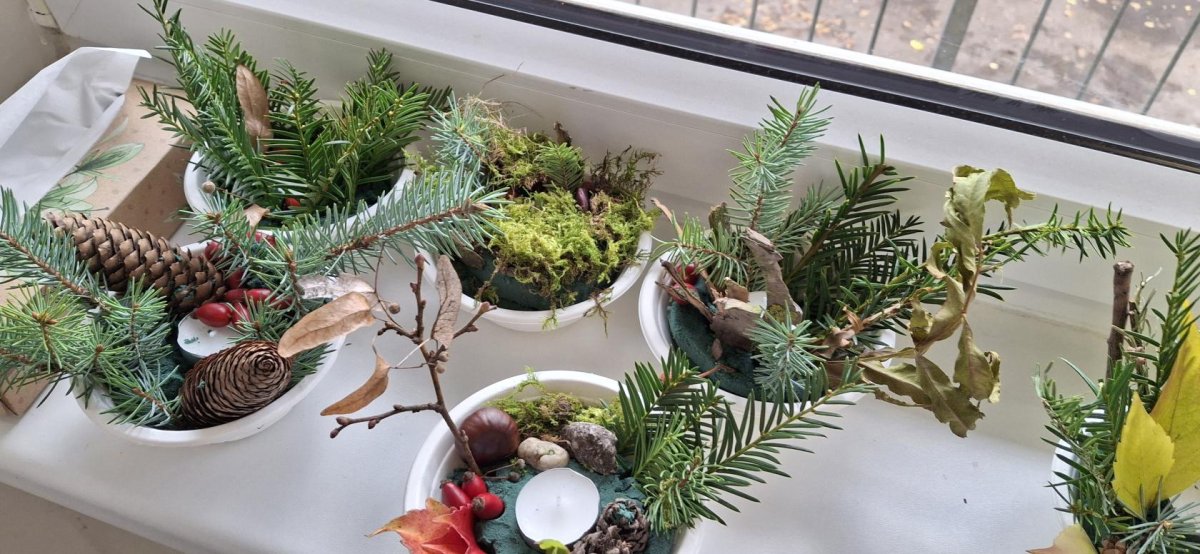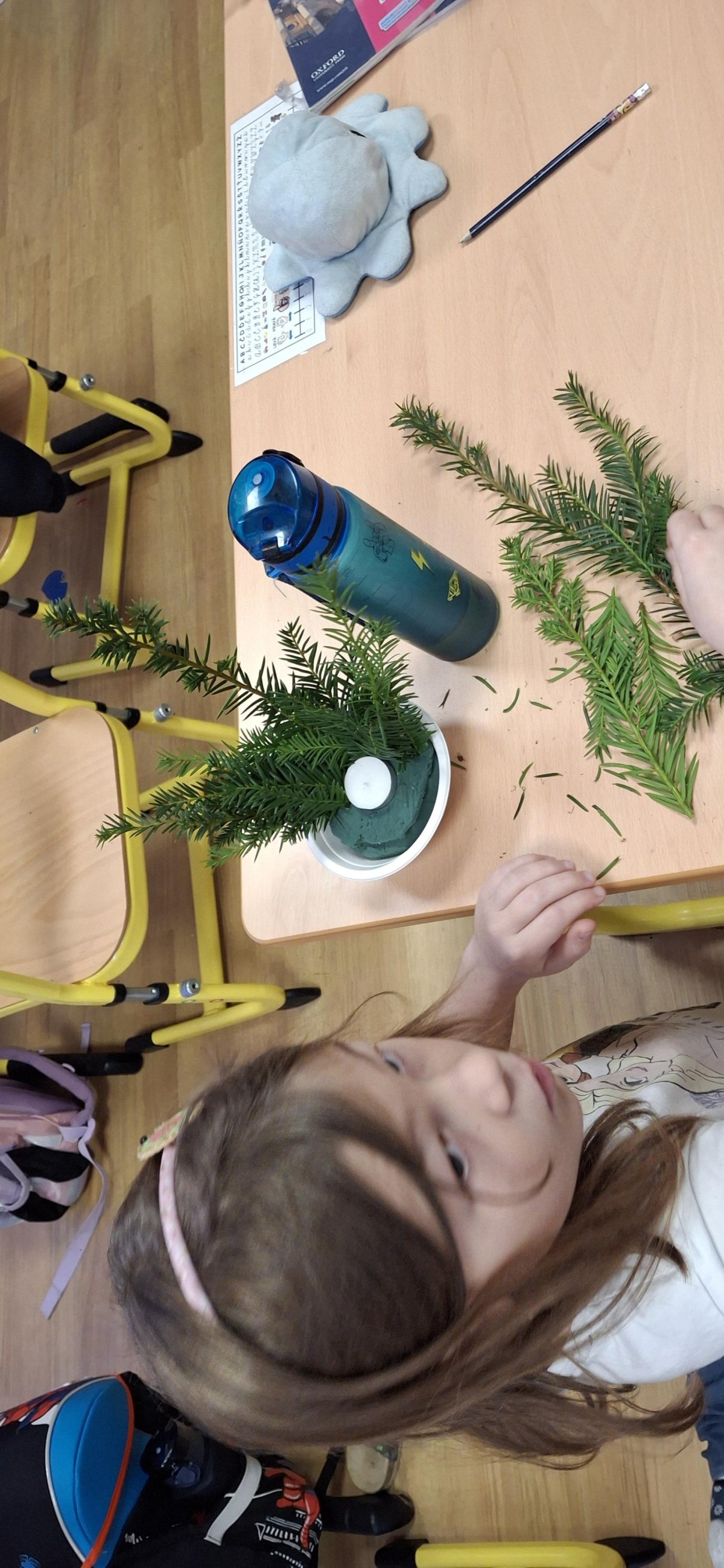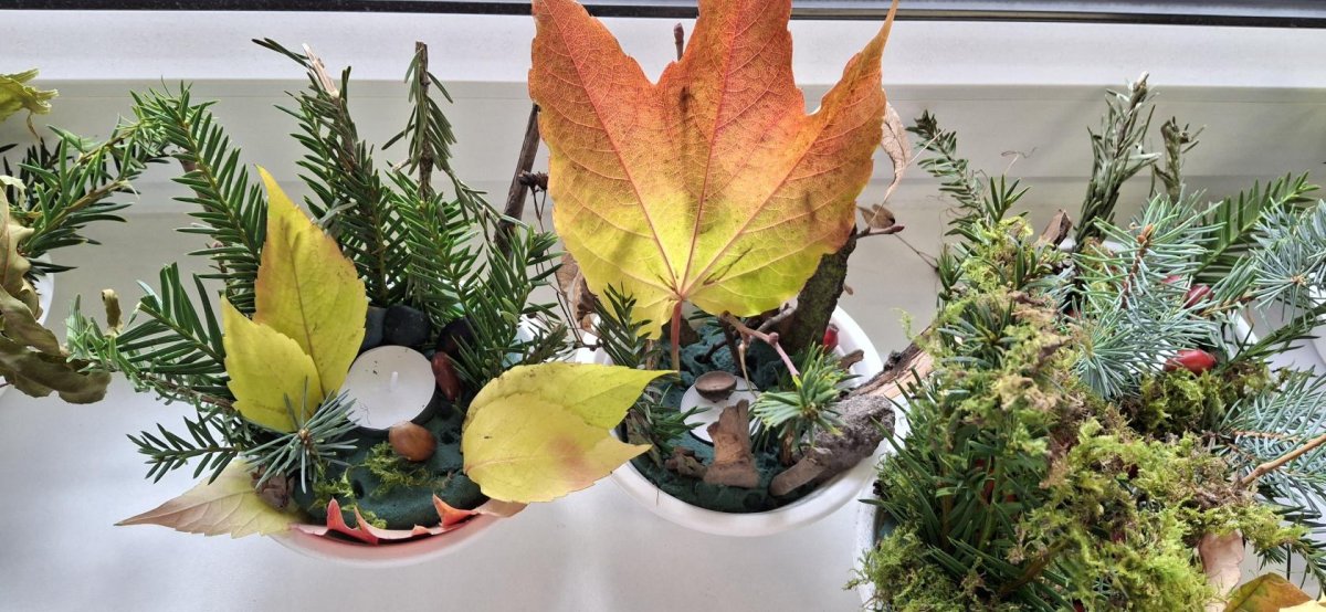Protože se nám blíží Památka zesnulých, s dětmi jsme si vytvořili dušičkový svícen, který si odnášejí domů. Všechny jsem upozornila, že svícen je na okrasu, případně raději vyměňte svíčku za elektrickou. Můžete také mírně zalít, aby větvičky vydržely déle.