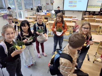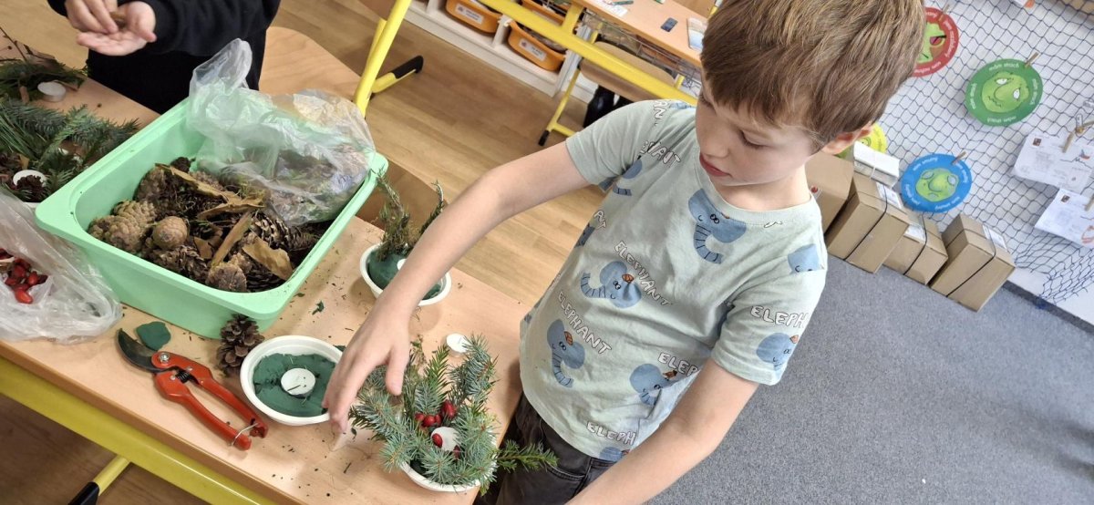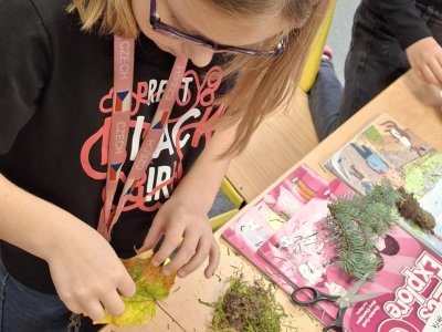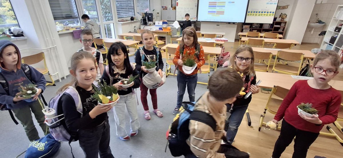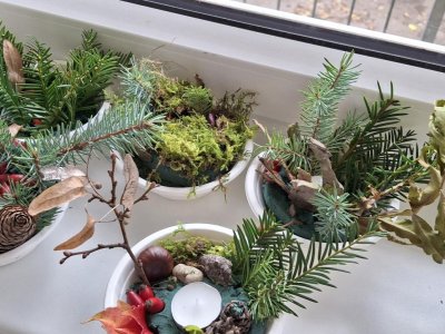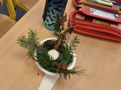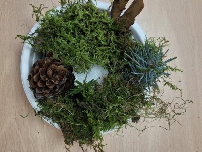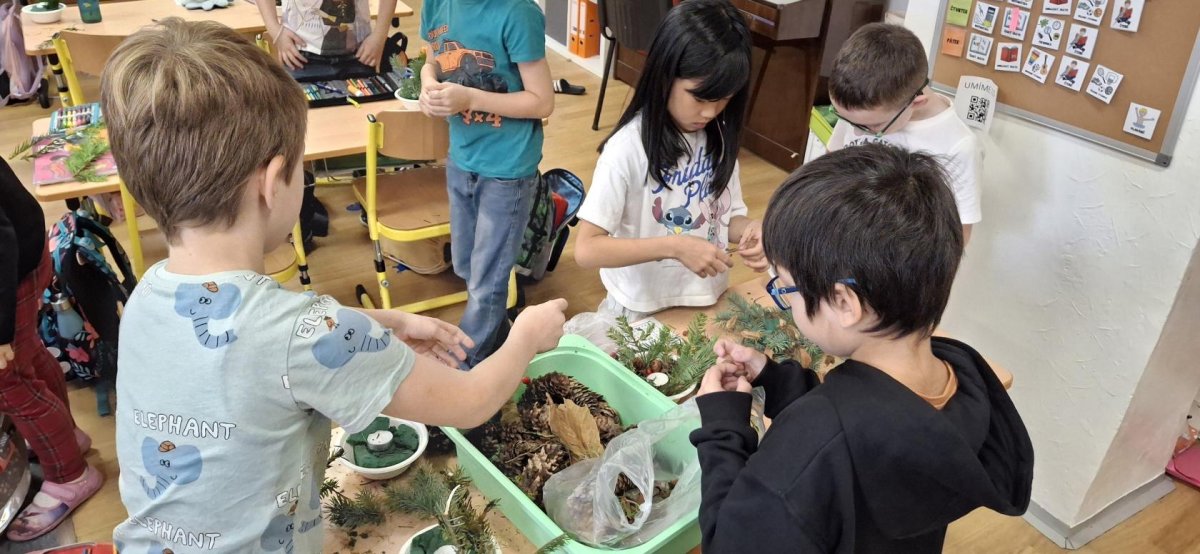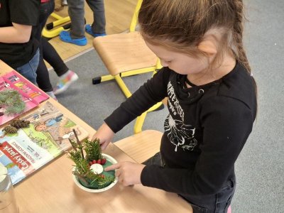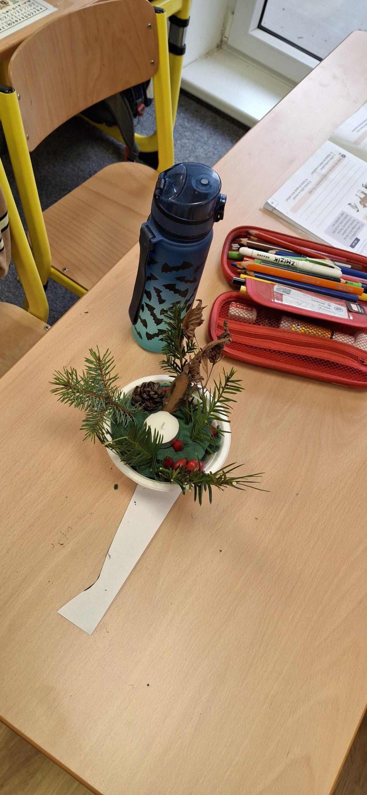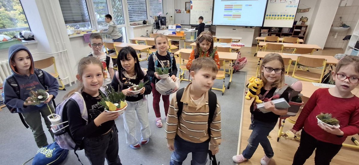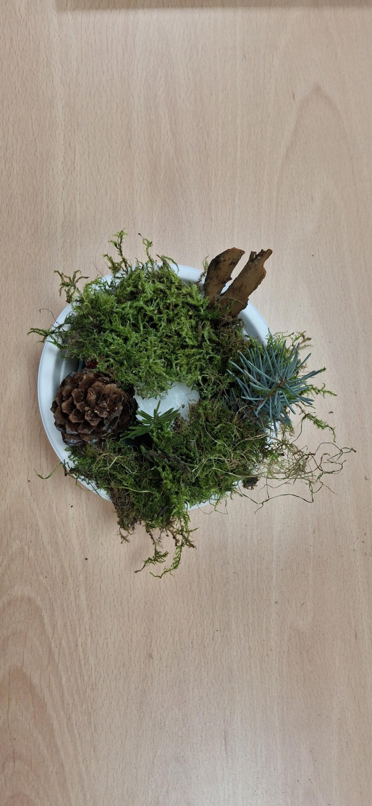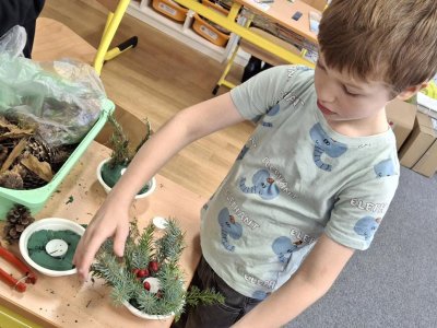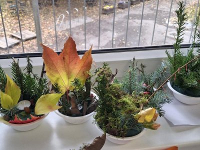Protože se nám blíží Památka zesnulých, s dětmi jsme si vytvořili dušičkový svícen, který si odnášejí domů. Všechny jsem upozornila, že svícen je na okrasu, případně raději vyměňte svíčku za elektrickou. Můžete také mírně zalít, aby větvičky vydržely déle.