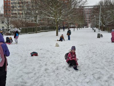Před školou jsme si ještě nechali chvilku na radost ze sněhu a spokojení jsme poté odcházeli buď na oběd, nebo na atletiku. O zážitku jsme si dnes už nestihli popovídat, ale po víkendu se k návštěvě planetária ještě vrátíme.