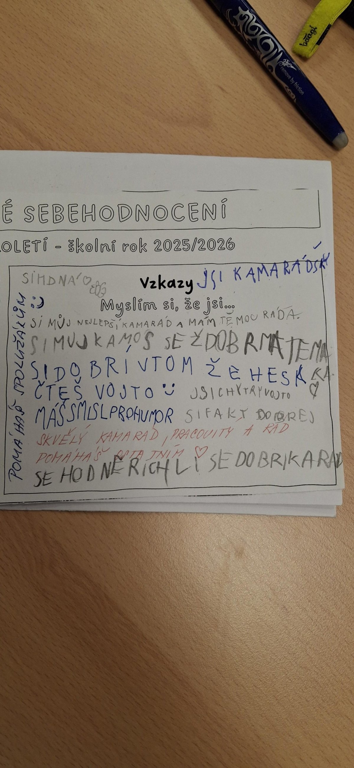 - Sebehodnocení, hodnocení - Myslím si, že jsi...
