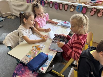 přinést na zítra dva malé předměty stejné velikosti, rozdílné barvy. (knoflíky, kostičky LEGA...) budeme používat jako pomůcku při rozkladech.