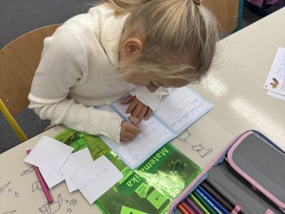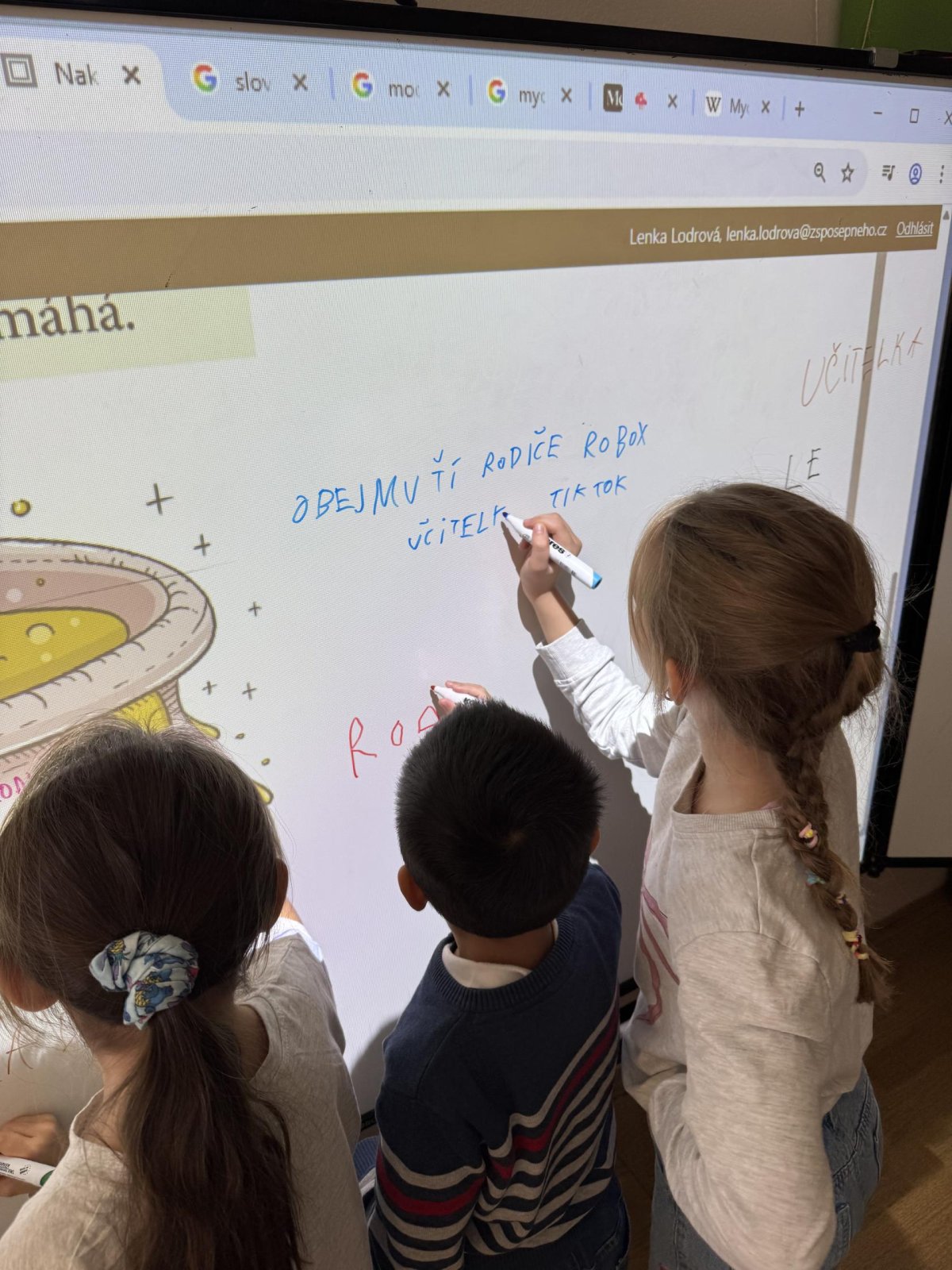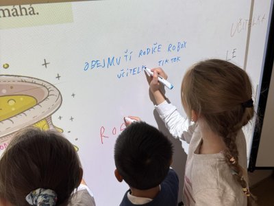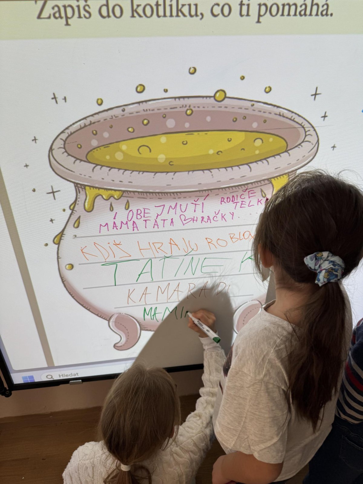 Fotky jsou z dnešní hodiny matematiky a čtení, děti psaly do PS, co jím pomáha na špatnou náládu. :)