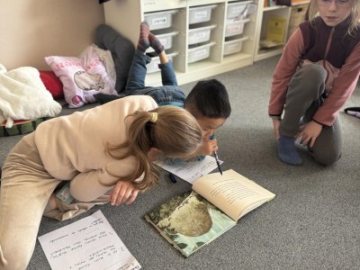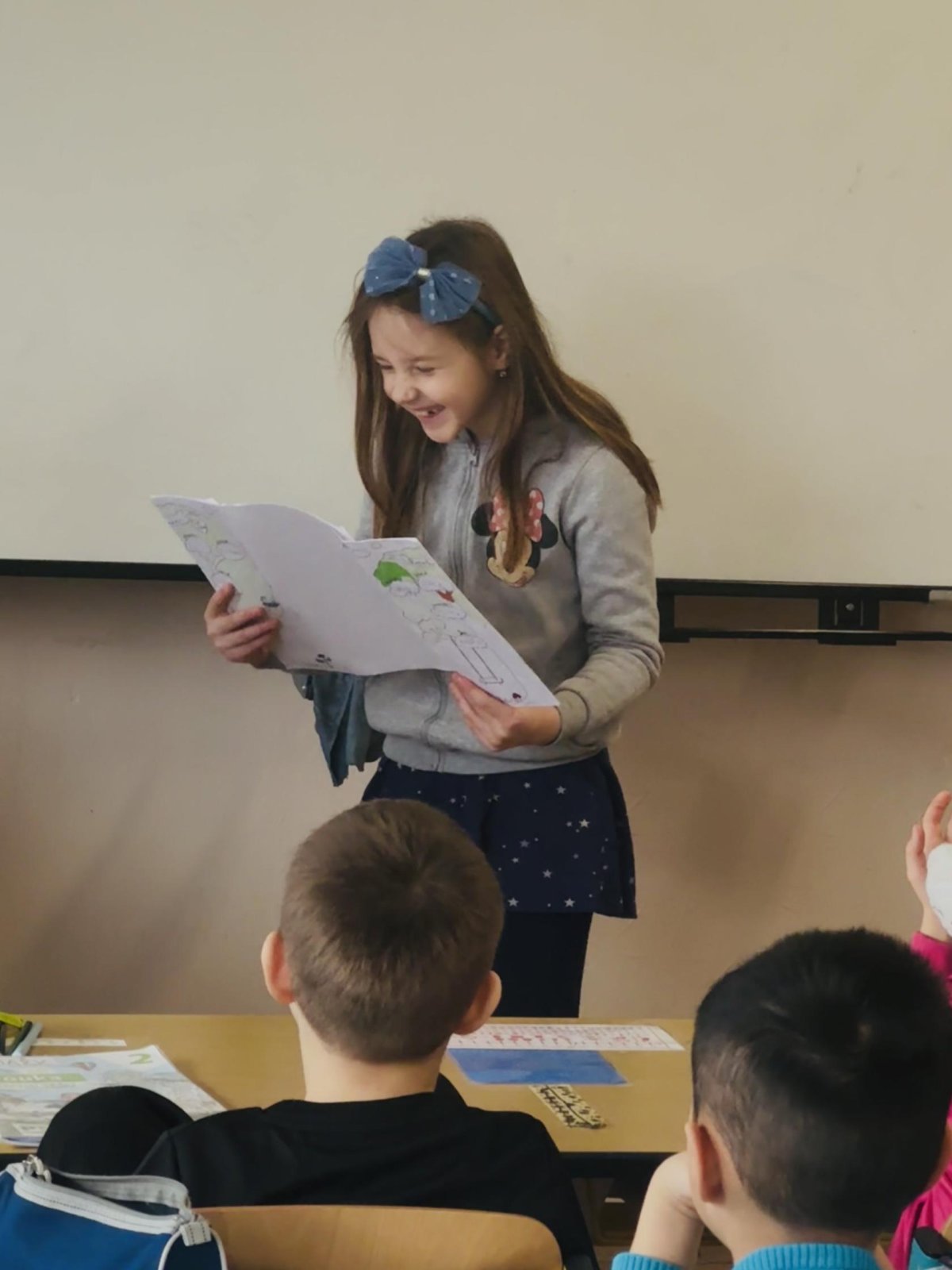 Během čtení jsme si společně přečetli ukázku z encyklopedie o rodině a propojili tak český jazyk s prvoukou, kde jsme začali novou kapitolu Naši nejbližší. Děti celý týden doma pracovaly na lapbooku. V pátek ti, kteří měli práci hotovou, svou práci prezentovali před třídou. V úterý budou prezentovat ti, kteří dnes ještě neměli příležitost nebo se na vystoupení necítili.