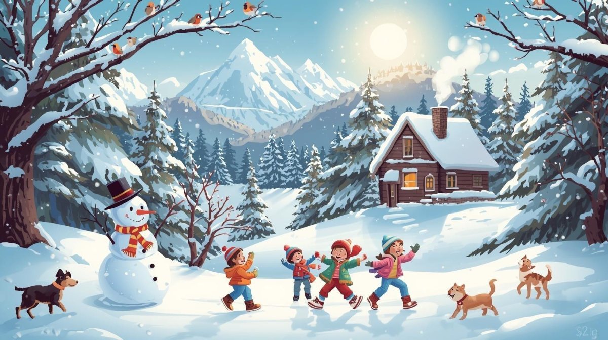 Na příští pondělí si mají děti za úkol připravit 8 jednoduchých vět - popis obrázku. Navazujeme na popis obrázku, který jsme brali v lekci 1 (there is / there are) + popis počasí z lekce Hello again (It is snowing, It´s sunny).