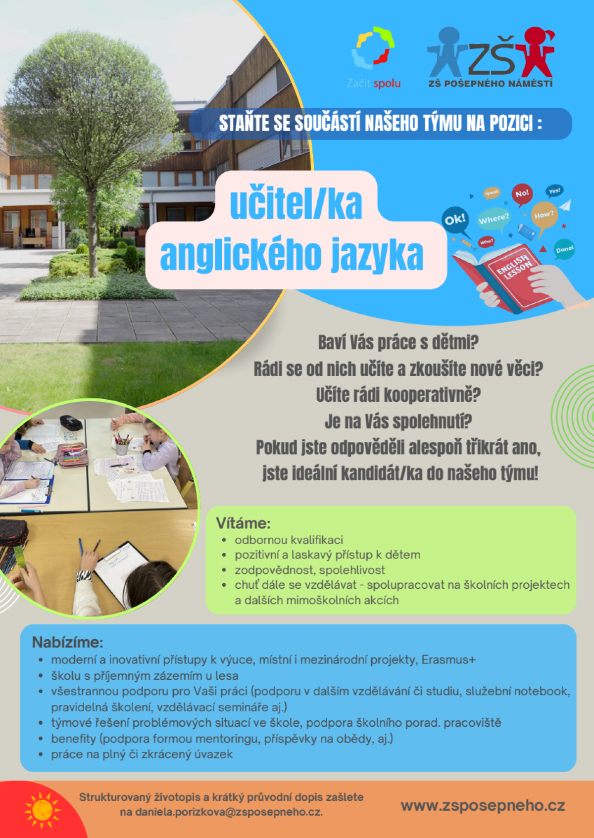 Přijmeme nového učitele/učitelku anglického jazyka!