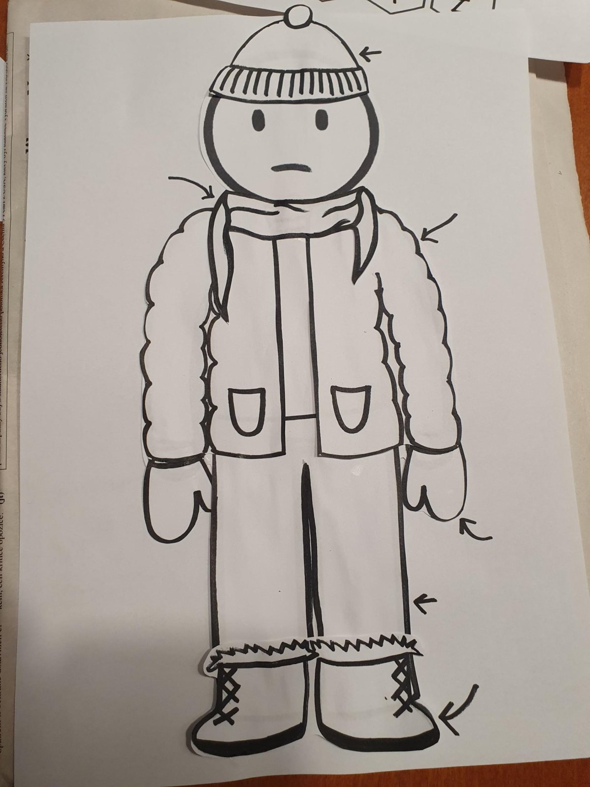 Prvouku jsme propojili s výtvarnou výchovou – žáci oblékali postavu do zimního oblečení, které jsme následně pojmenovali a jeho názvy zapisovali nebo lepili. Povídali jsme si o tom, proč je v zimě důležité se teple oblékat, a věnovali jsme se také tématu rodiny a jejích členů.