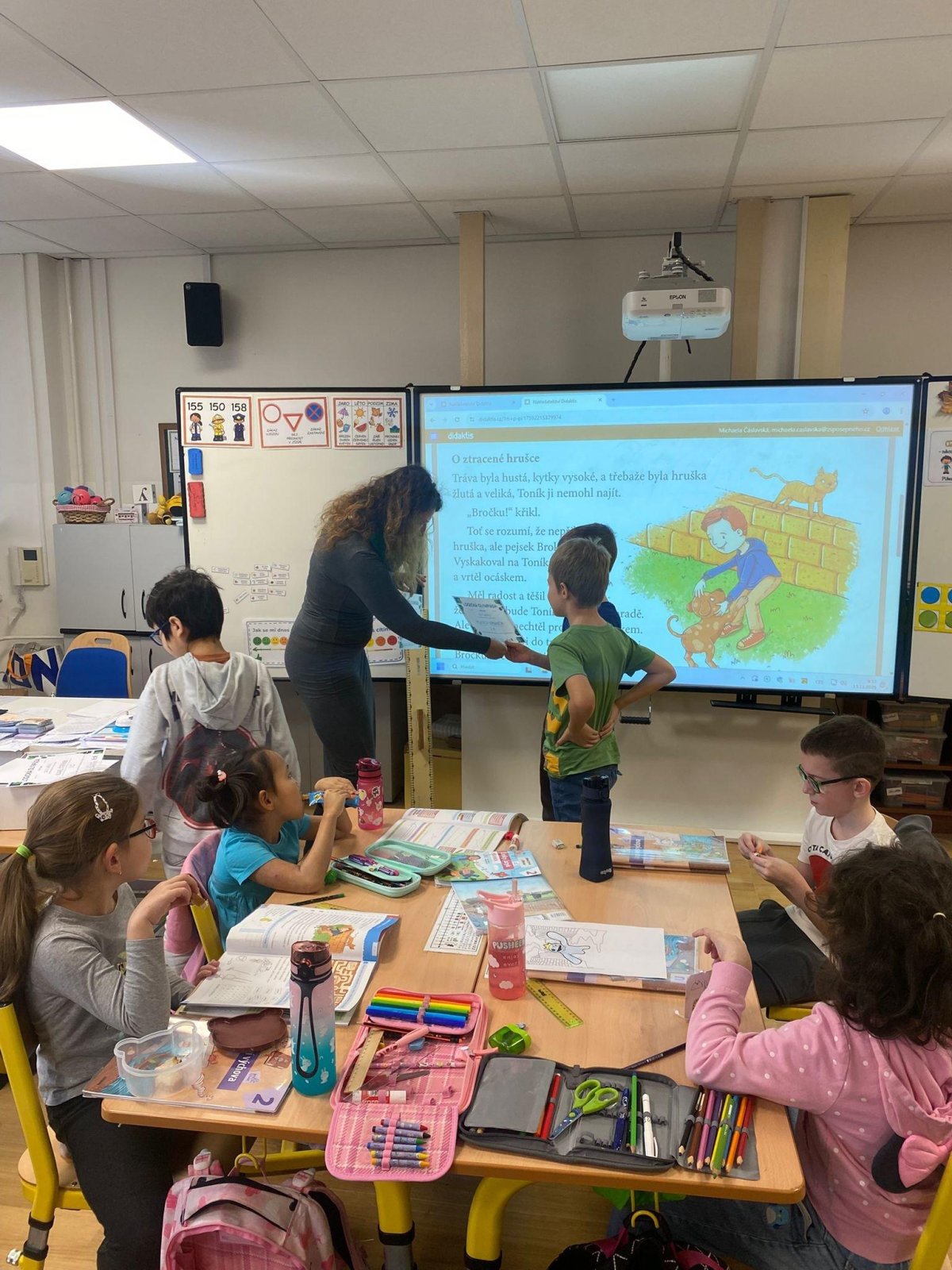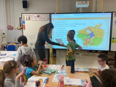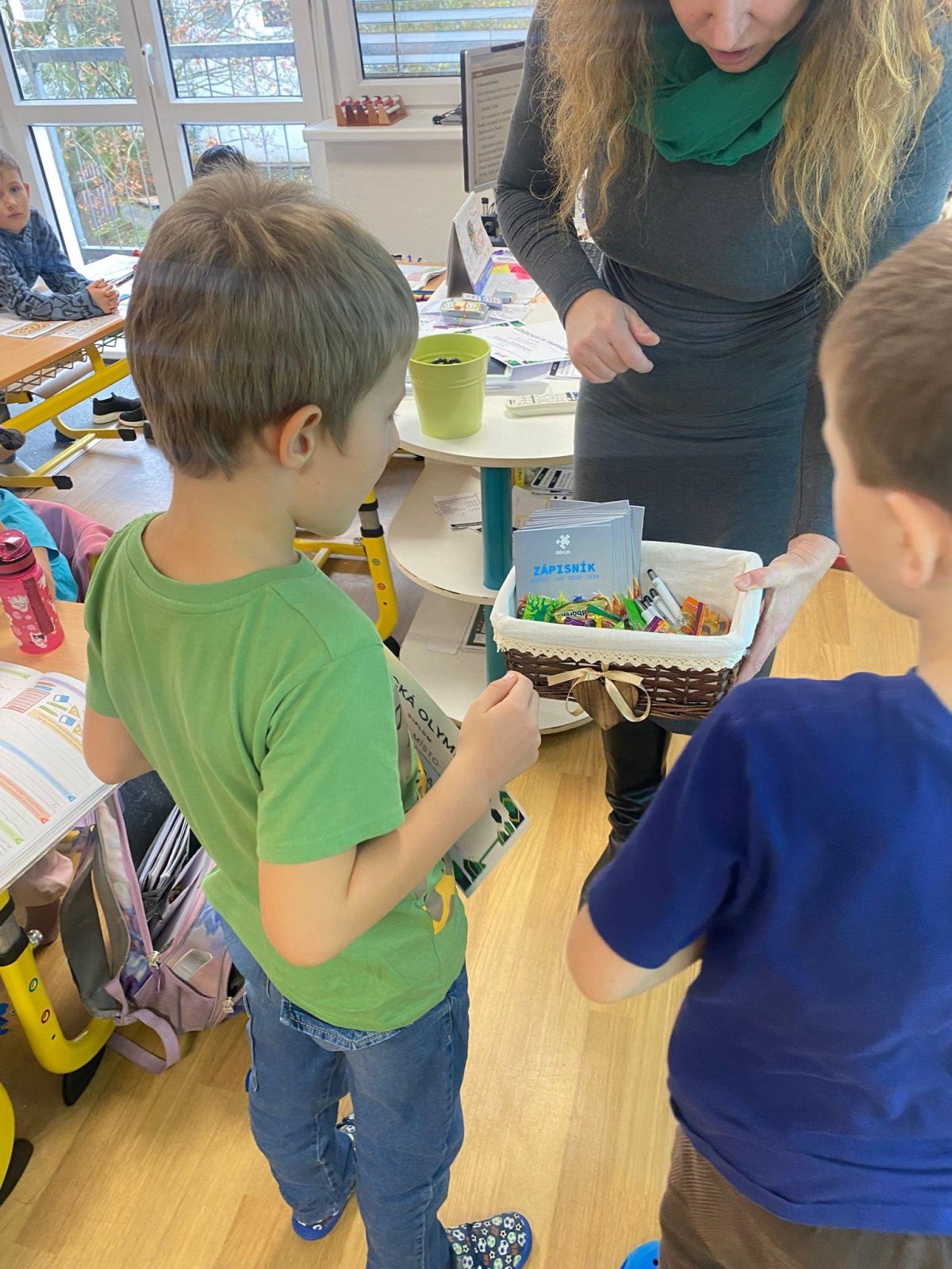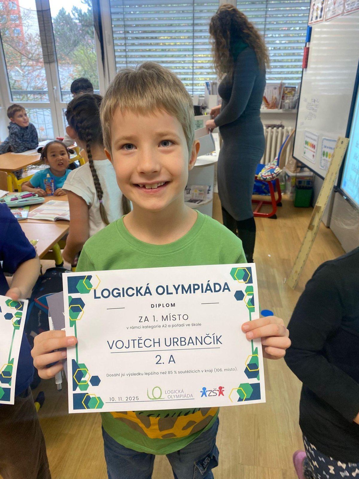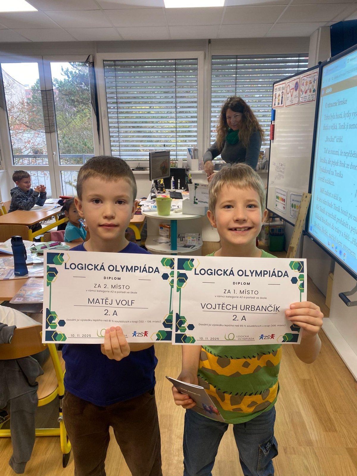 Dnes také přišla našim výborným počtářům předat diplom paní zástupkyně Rejnová.