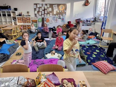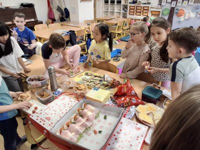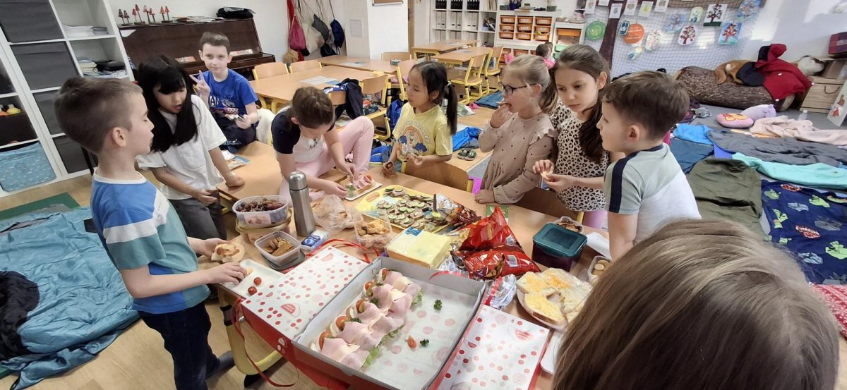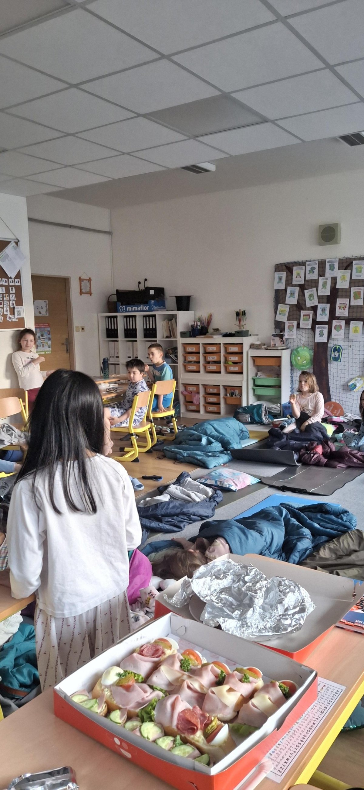 Děkujeme všem rodičům za donesené dobroty. Stejně jako minulý rok nás potěšilo i milé překvapení od maminky Páti, která přinesla ze Světozoru výborné chlebíčky a koláče. Něco nám ještě zbylo, a tak si v pondělí dopřejeme i sladkou snídani.