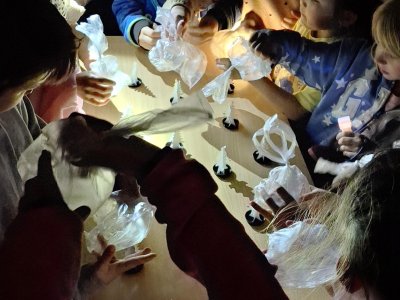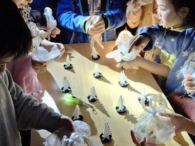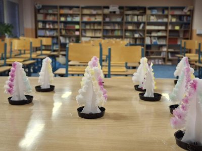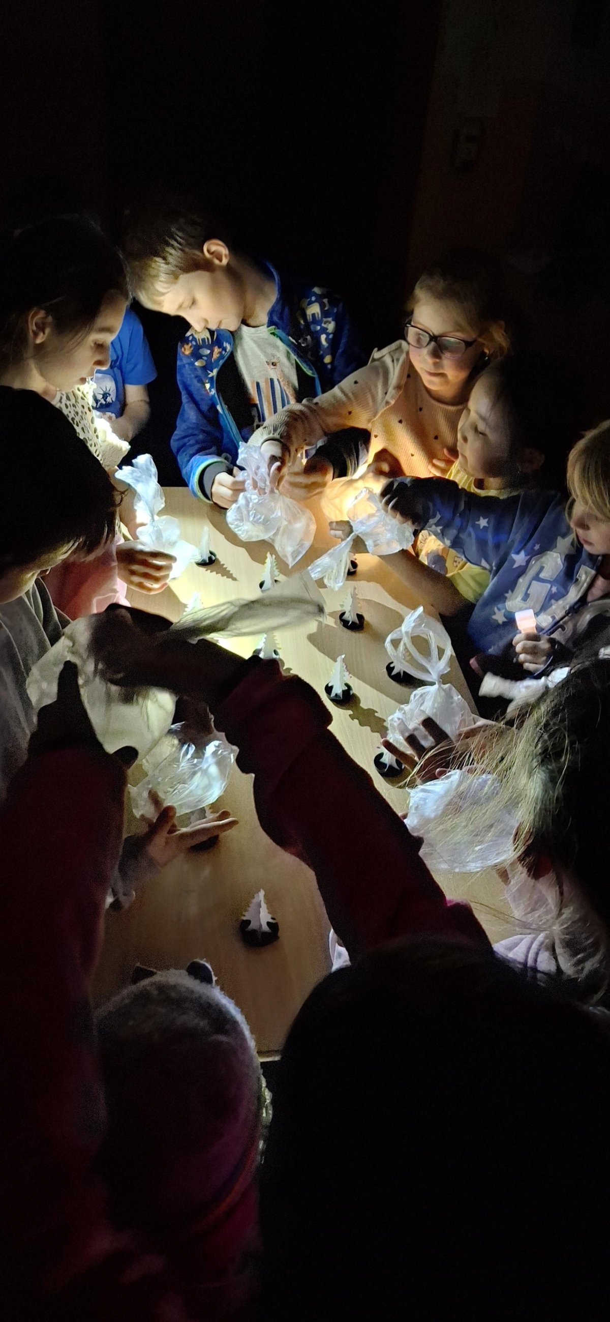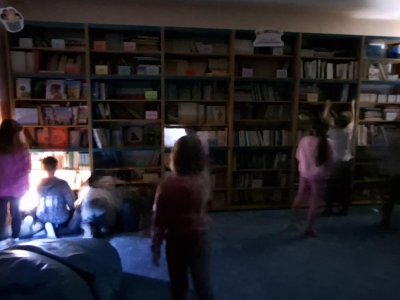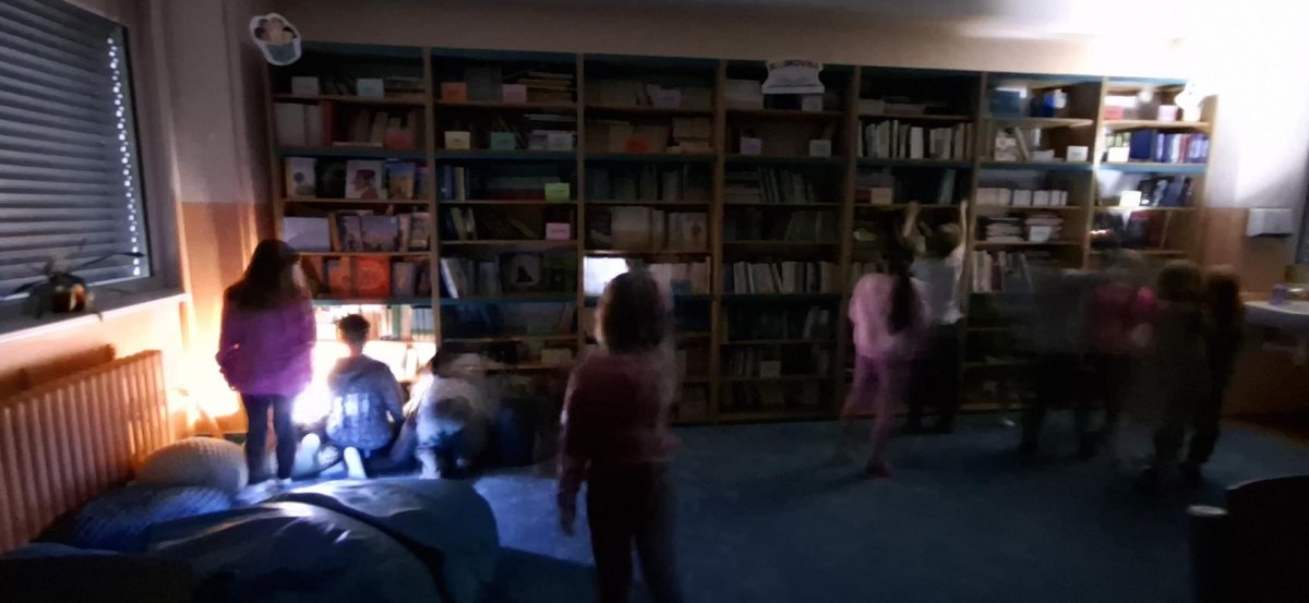 A tak jsme se vydali na výpravu pro živou vodu do nočního lesa. Díky odhodlání všech dětí se podařilo úkol splnit – všichni se bezpečně vrátili zpět a mohli jsme se pokusit les zachránit. Večer se sice nic viditelného nedělo, ale ráno nás čekalo krásné překvapení – stromy v knihovně opět rozkvetly.