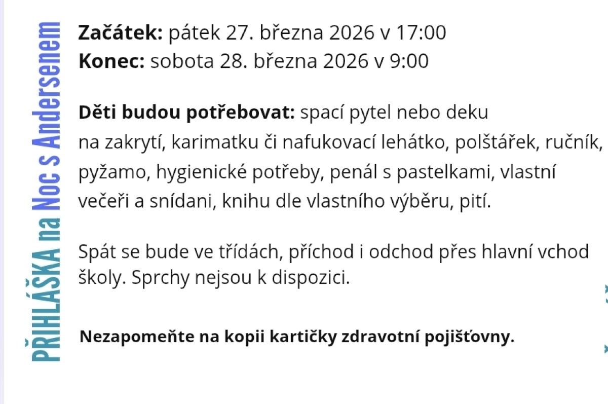 Večer nás čeká dobrodružství ve škole i venku, proto nezapomeňte i na teplé oblečení, ochladilo se.