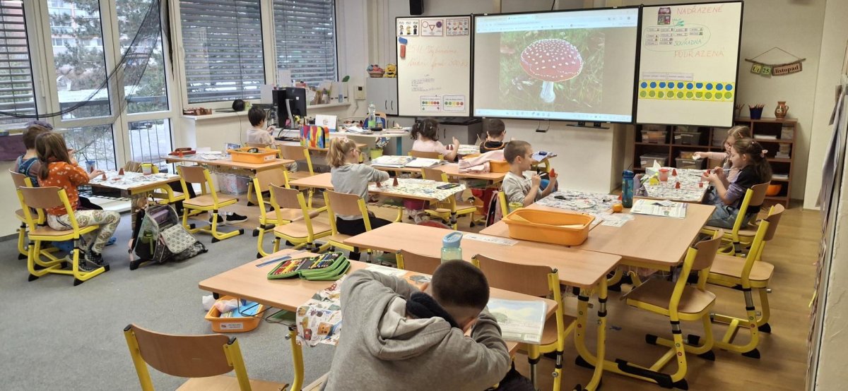 - hodiny a čas - prohlíželi jsme si sluneční soustavu, dívali se, jak se točí Země okolo své osy i kolem slunce a následně procvičovali hodiny na tabletech