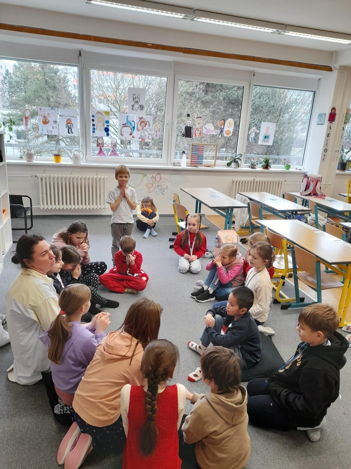 V prvouce jsme si povídali o lidech kolem nás, o rozdílnosti, která je ovšem jen zdánlivá, protože uvnitř jsme všichni stejní. Mluvili jsme o lidských vlastnostech i chování ke spolužákům. Téma jsme využili i ve výtvarné výchově, při které se každý nakreslil s tím, co má rád.