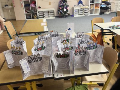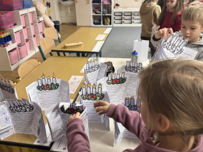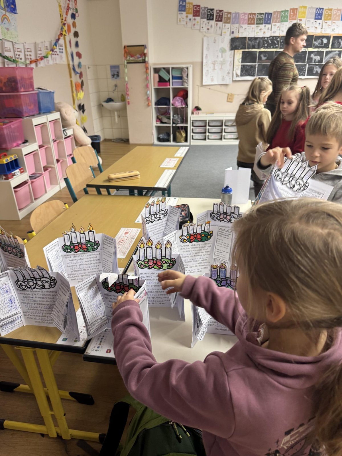 Ve škole jsme ještě stihli dolepit lucernu s Betlémským světlem a otevřít předposlední okénka našeho adventního kalendáře.