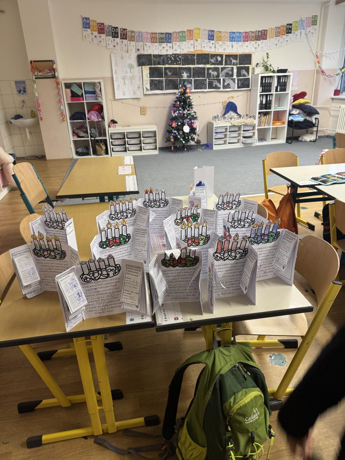 Zítra nás čeká třídní besídka. Kdo bude chtít, může donést malé dárečky nebo cukroví na ochutnávku. Děti si domů odnesou dárečky i svícínek z keramické hlíny – prosíme, připravte jim krabičku nebo kousek měkké látky, aby se při cestě domů nerozbil.