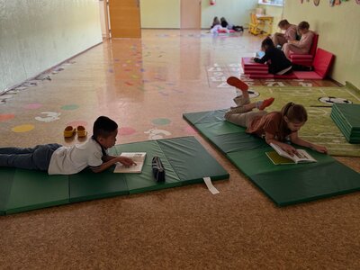 Během čtení jsme zvládli další kapitolu z knihy Kvak a Žbluňk!