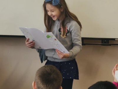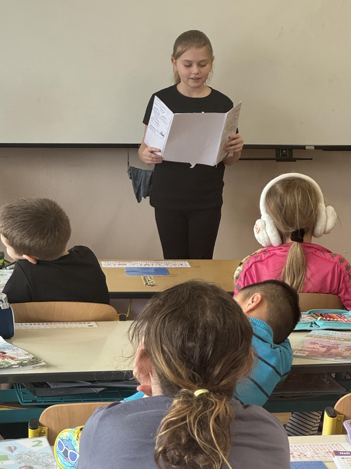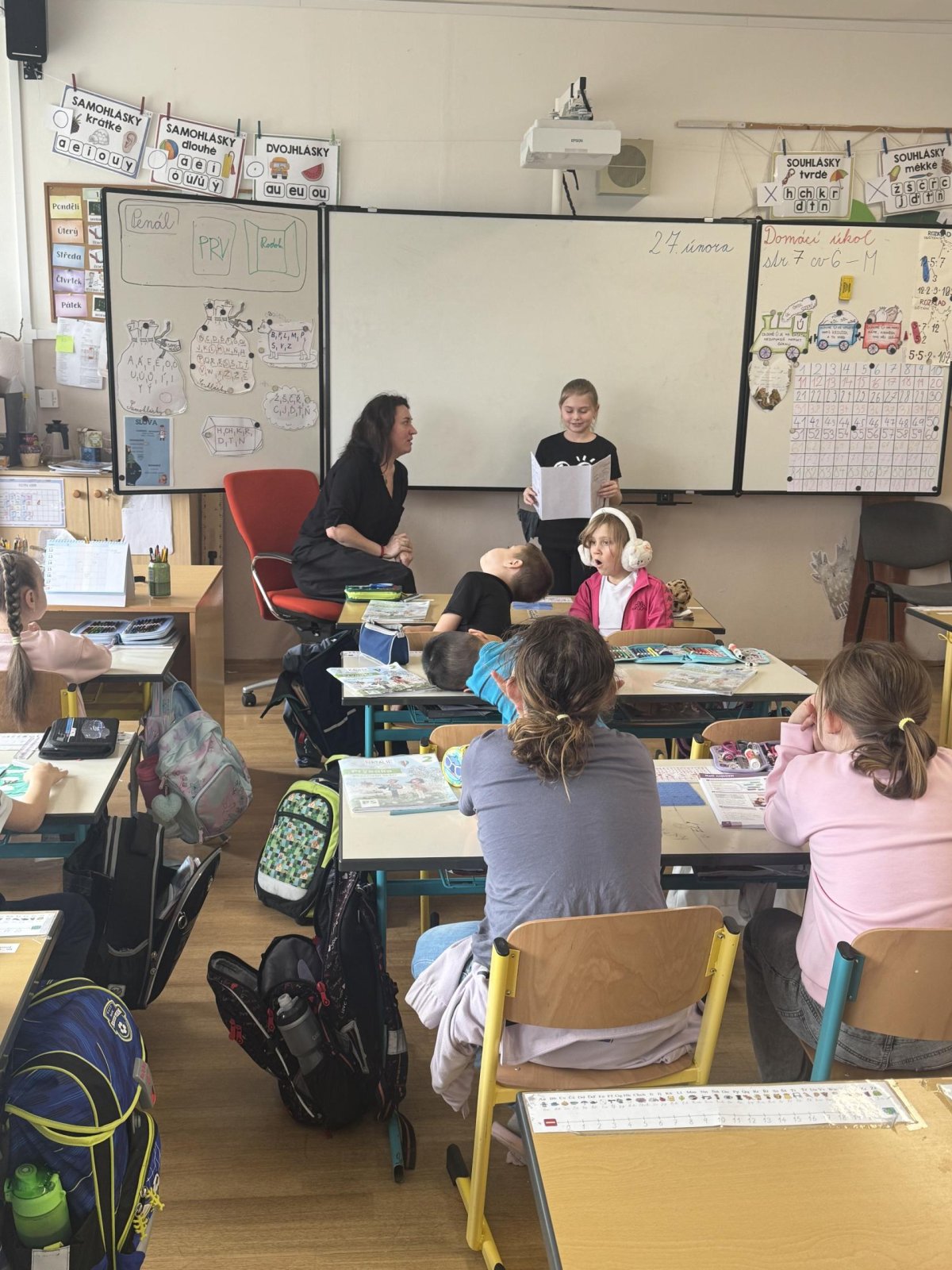 Během čtení jsme si společně přečetli ukázku z encyklopedie o rodině a propojili tak český jazyk s prvoukou, kde jsme začali novou kapitolu Naši nejbližší. Děti celý týden doma pracovaly na lapbooku. V pátek ti, kteří měli práci hotovou, svou práci prezentovali před třídou. V úterý budou prezentovat ti, kteří dnes ještě neměli příležitost nebo se na vystoupení necítili.