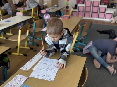 V českém jazyce jsme celý týden pilně procvičovali tvrdé a měkké souhlásky. Doplňujeme cvičení do učebnice, vymýšlíme věty a hledáme slabiky v textu. Trénujeme i s různými pomůckami a dětem se opravdu daří.