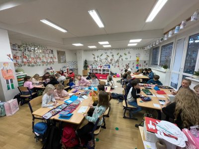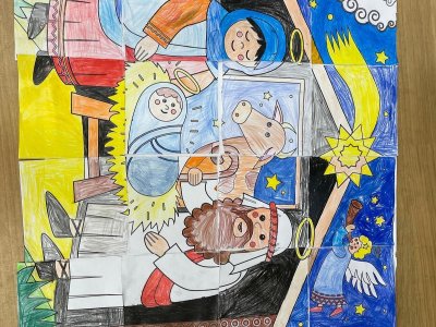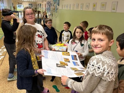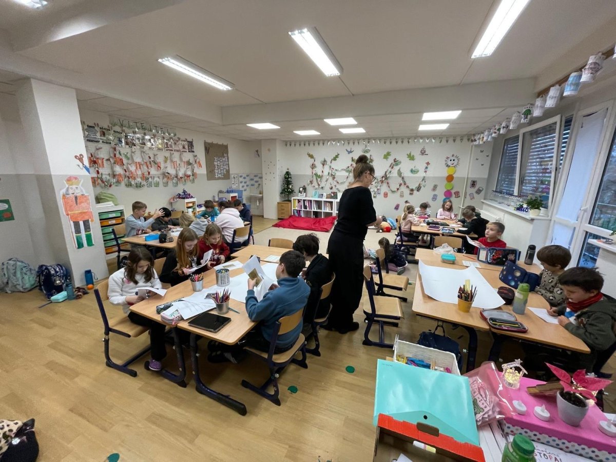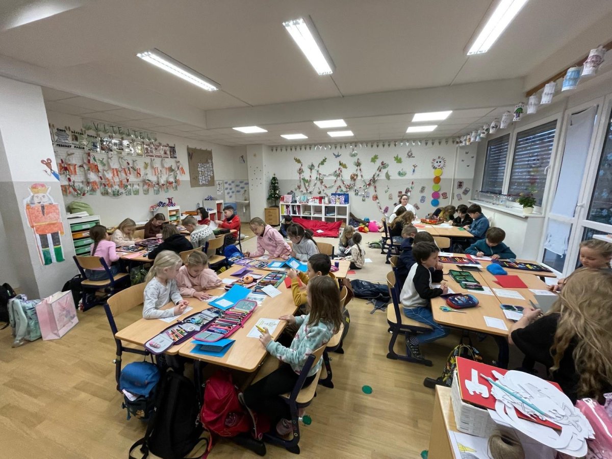 Žáci 1.B a 4.C spojili síly a společně pracovali na projektu. Vytvořili plakát s historií příběhu a nakreslili samotný Betlém. Také si každá třída vytvořila kooperativní obraz a své vlastní betlémky. 16.12. jsme navštívili výstavu betlému v Toulcově dvoře, kde si žáci mohli prohlédnout betlémky ze všech koutů republiky.